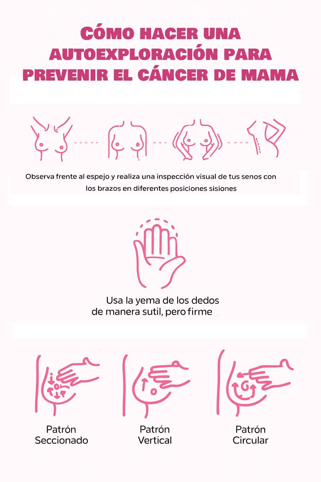 Autoexploración mensual: desde el inicio de la menstruación, revisar los senos para detectar anomalías.